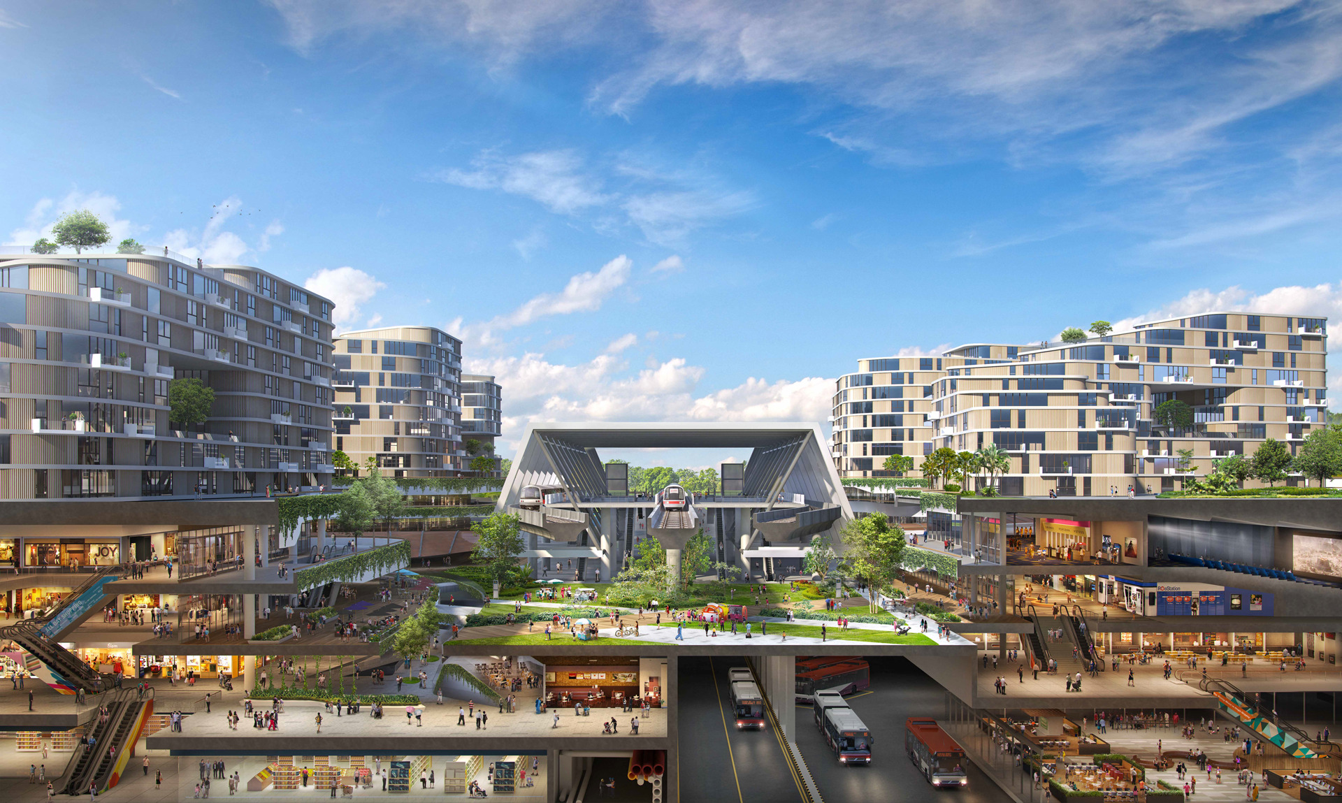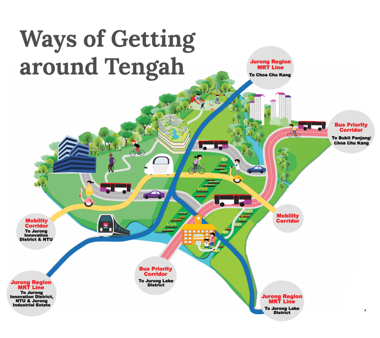 Most bus stops will be within 300 m of residential blocks. Bus services are also comprehensively planned to facilitate both intra-town connections to key amenities and work places. Bus-priority corridors also enhance the overall bus network.